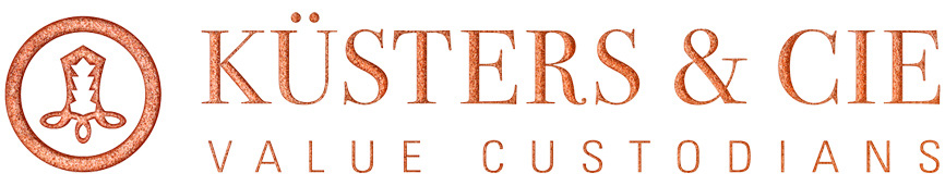 Das Zusammenspiel der beiden Wappenteile der Familie ist Grundlage für die Marke von Küsters & Cie Value Custodians. In die Marke ist quasi die Familienlogik aus Jahrhunderten eingeflossen: Zur Erfüllung der heutigen Anforderungen an ein integrales Wertemanagement für Menschen in komplexen Gesellschafter- und Vermögenssituationen.